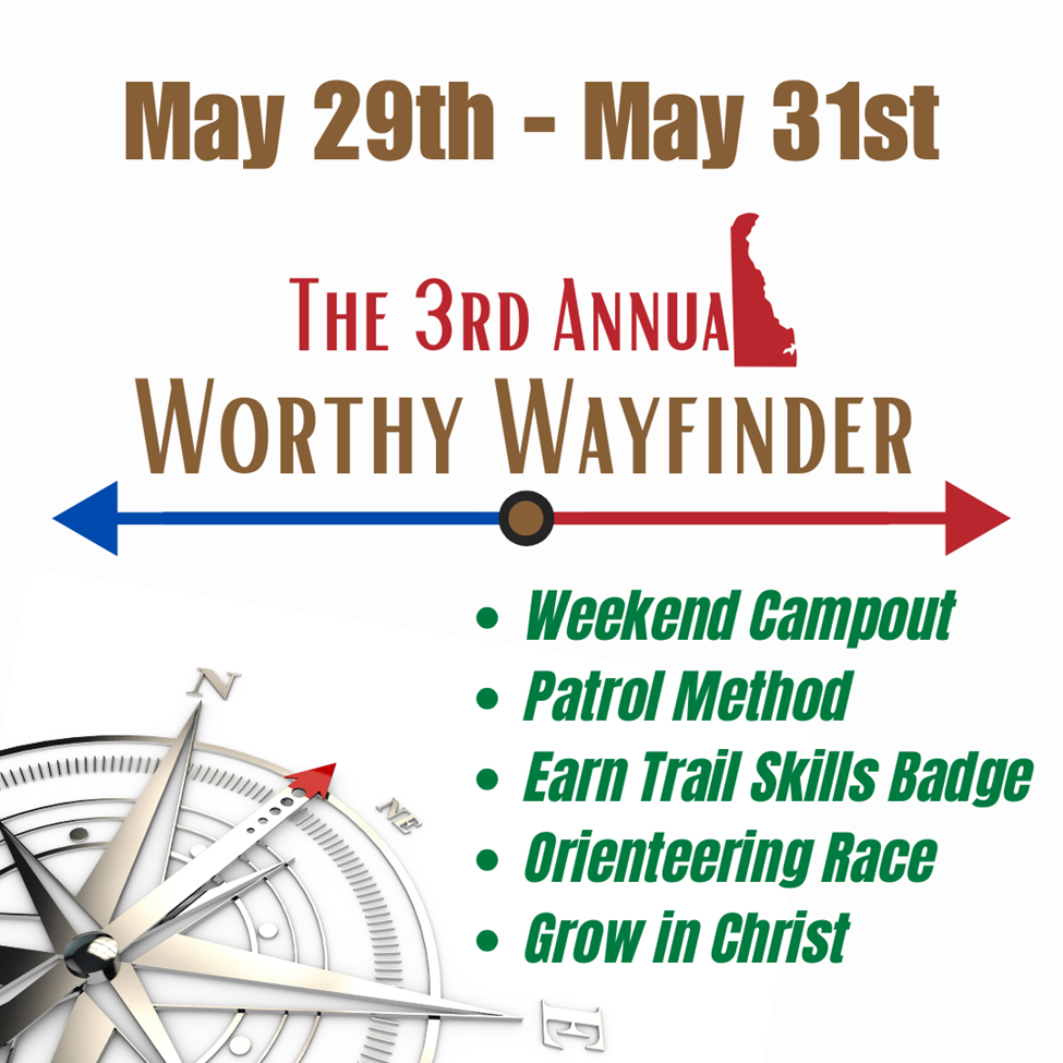Looking for an outstanding, challenging, character building, skills testing, Christ centered weekend adventure? Look no further as the 3rd Annual Worthy Wayfinder arrives May 29th – May 31st. The Delmarva Area would like to extend an invitation to all Trail Life troops to compete in an exhilarating challenge weekend in Central Delaware. You will arrive (more…)